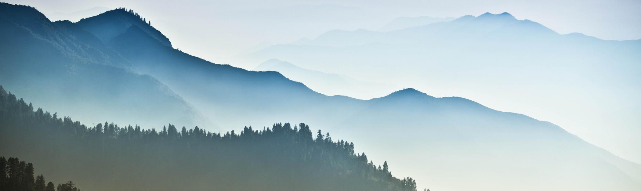 A graphic with heat pumps and trees in front of a blue-tinted forest