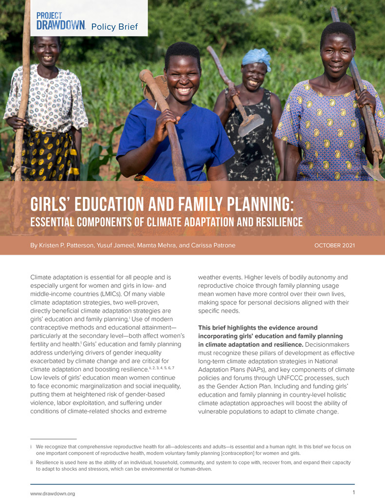 Girls’ Education, Family Planning, and Climate Adaptation